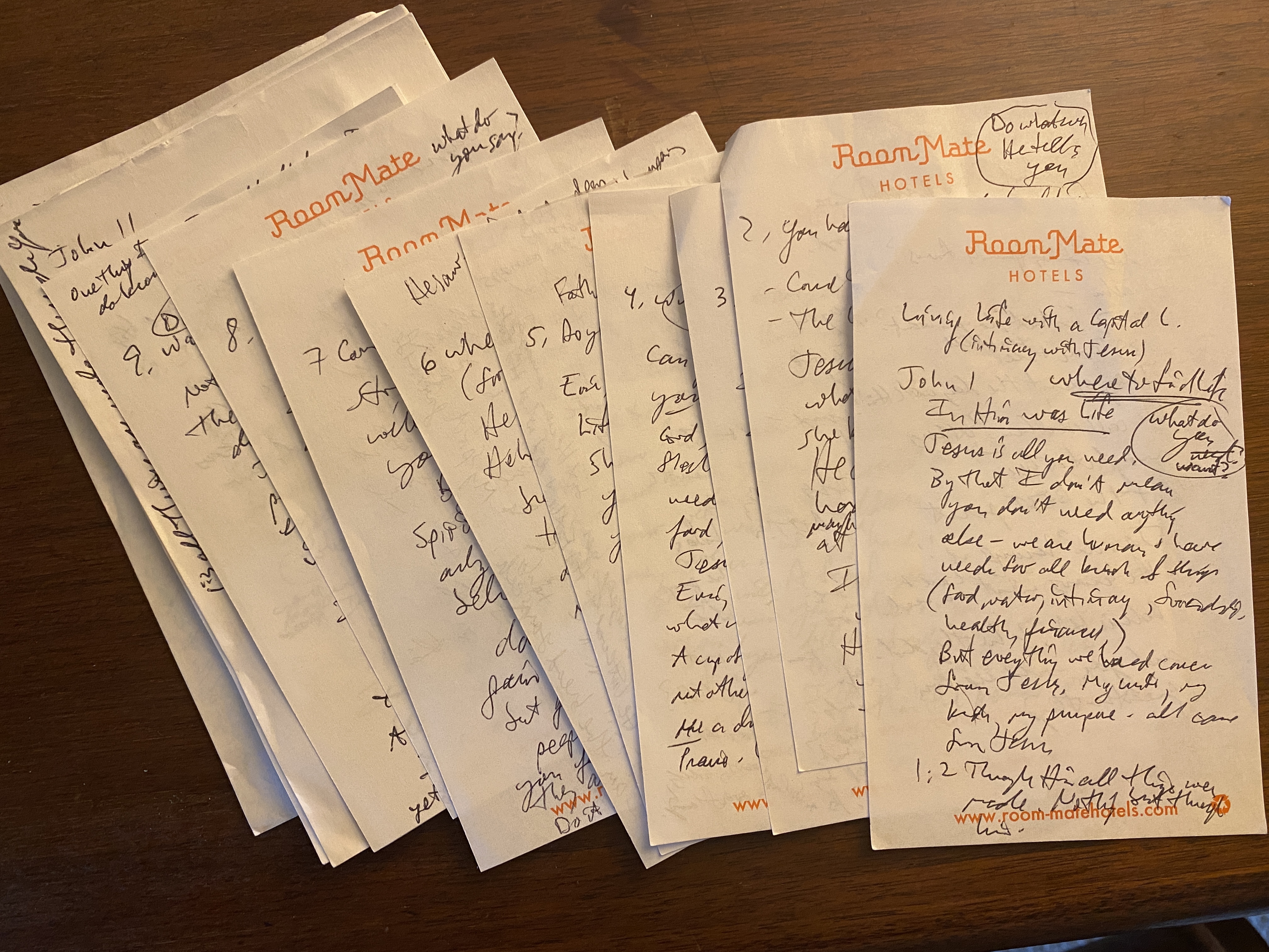 For the second story, I was flying home from that same trip and had pulled out my Bible to read. I was circling and underlining words and phrases and writing notes in the margins about what I felt God was saying to me.
